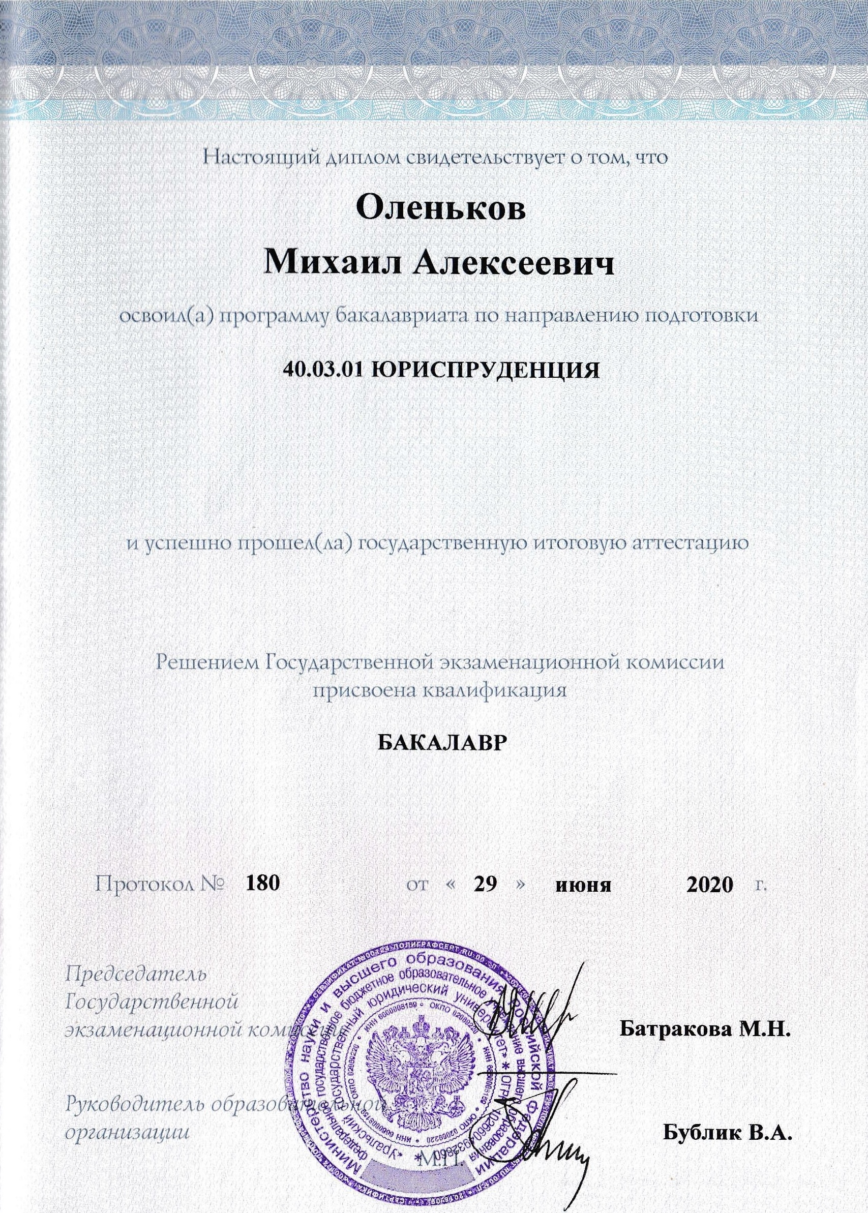 Оленьков Михаил Алексеевич